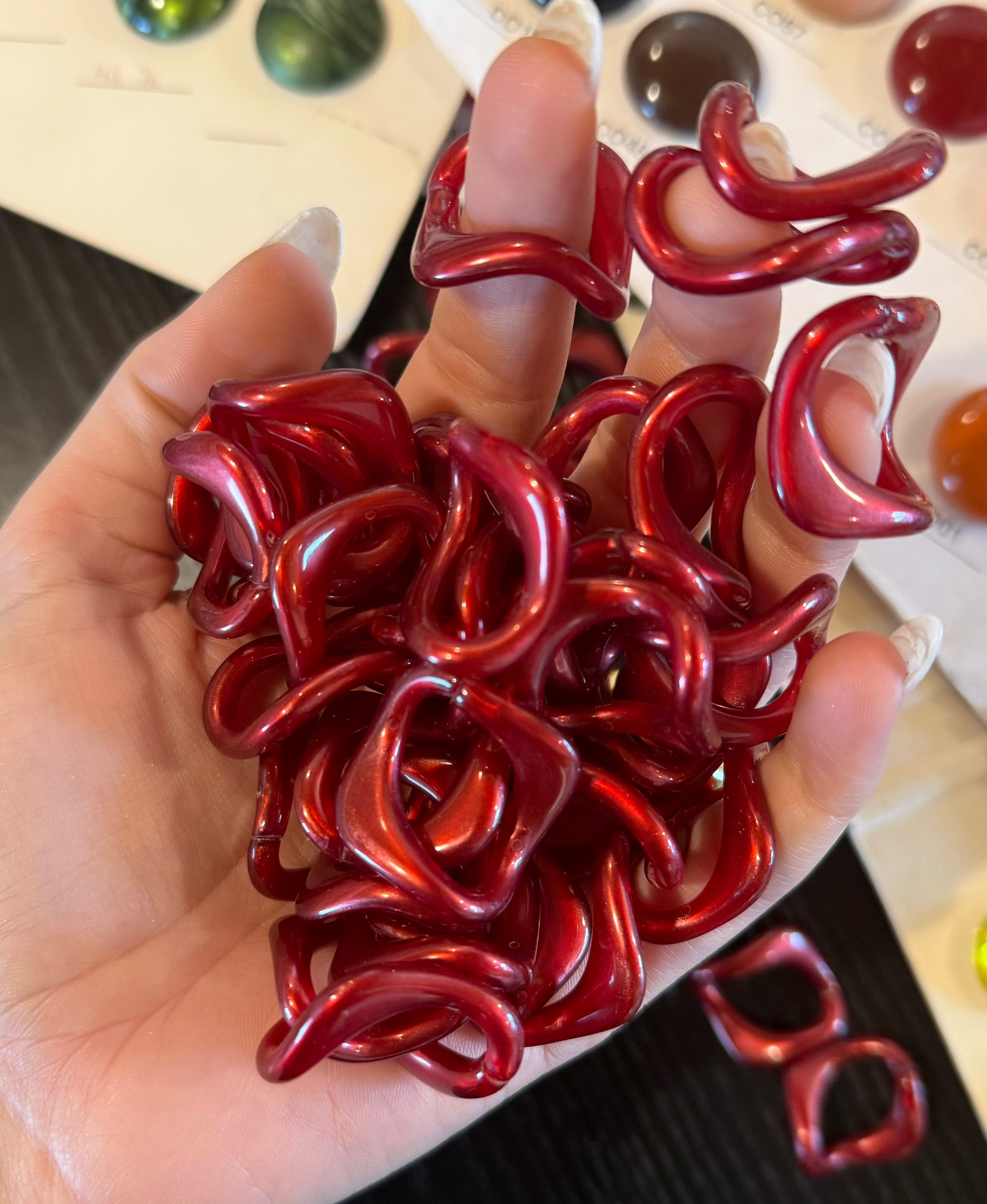 Le nostre produzioni in resina sono realizzate utilizzando con una percentuale del 60% con materiali di recupero, scarti di magazzino che vengono trasformati charm e borse di qualità, destinati a durare nel tempo.