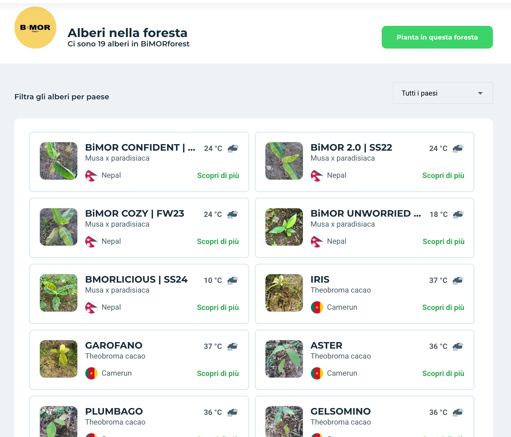 Per ogni collezione sold out piantiamo un nuovo albero nella BiMOR FOREST, nata dalla nostra collaborazione con la piattaforma Treedom, contribuendo alla riduzione della CO₂.